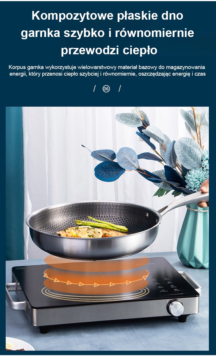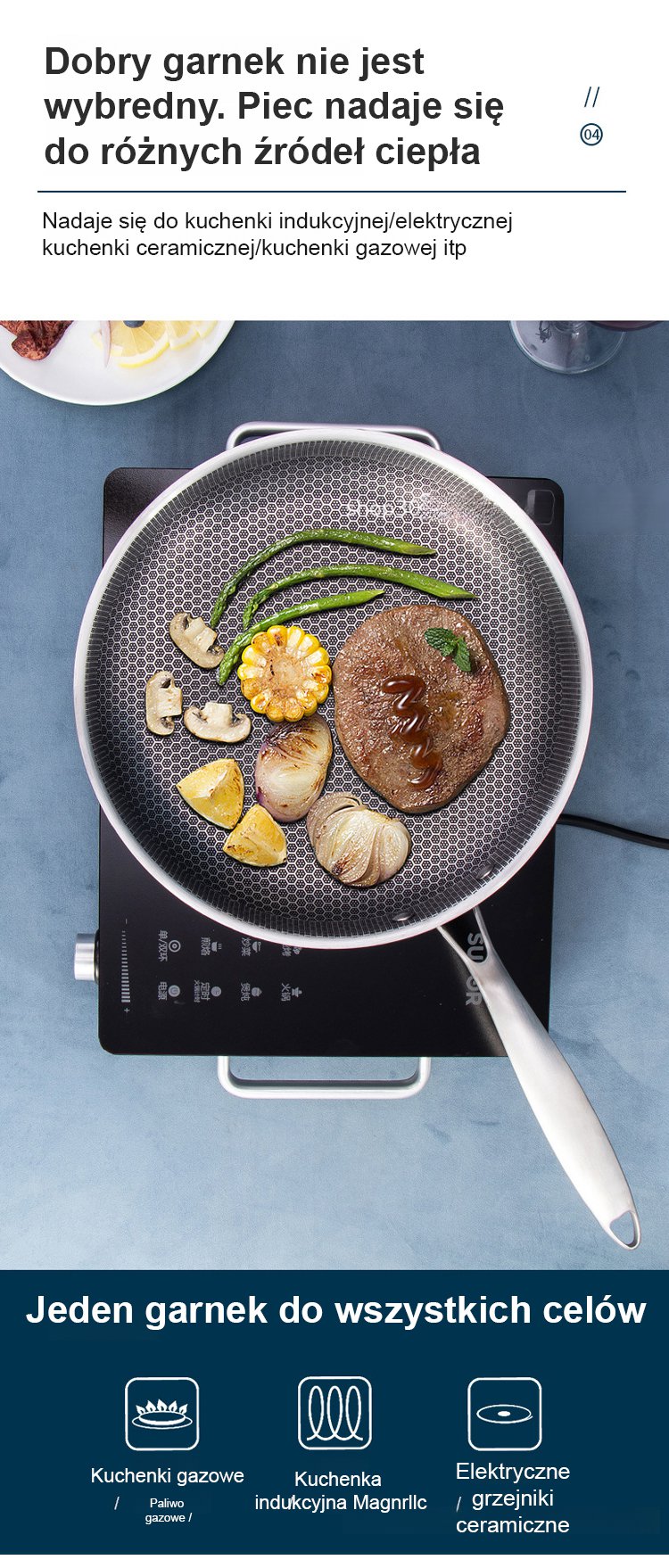 Patelnia ze stali nierdzewnej o strukturze plastra miodu z nieprzywierającym dnem bez powłoki