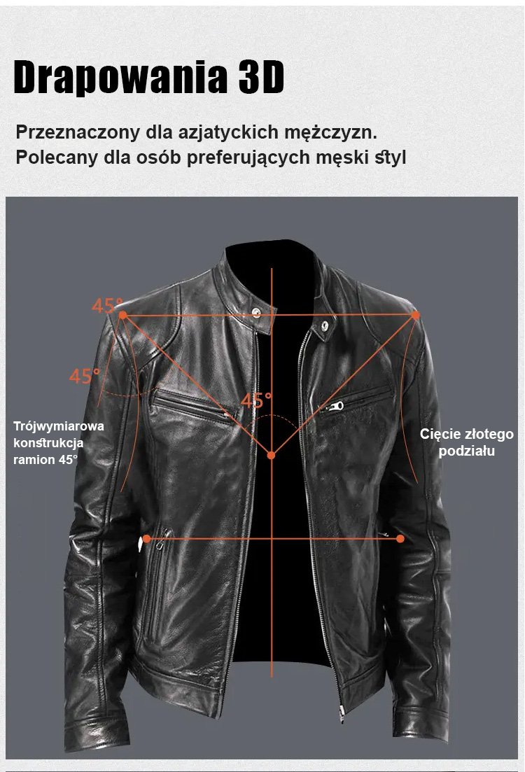 Jesienno-zimowy męski zestaw przeciwdeszczowy z kurtką skórzaną.